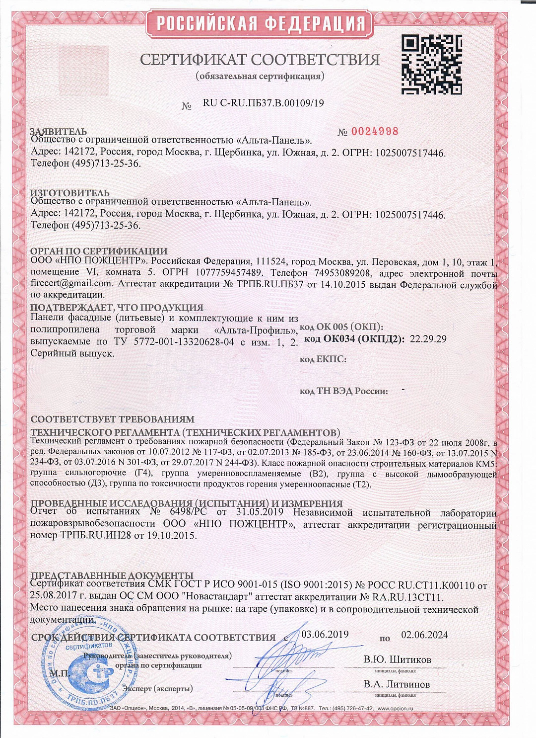 Подтвержденное сертификатами и действующими ГОСТ